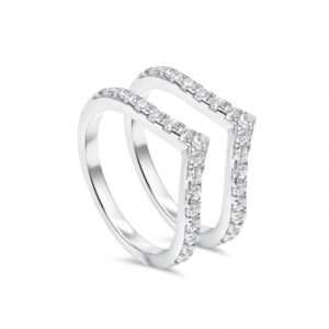 Silver V-Shaped Engagement Rings Stacking Set
