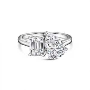 Silver Emerald & Pear Two-Stone Setting Wedding Rings