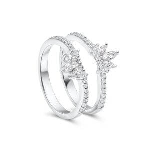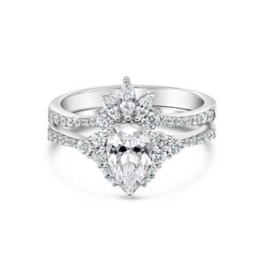 Pear Cut Engagement Ring Set With V-Shaped Band