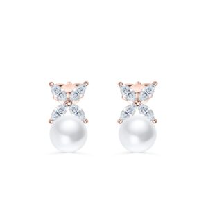 Marquise Floral Rose Gold Pearl Stud Earrings
