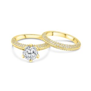 Round Cut Halo Yellow Gold Wedding Ring Set