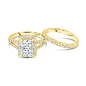 Yellow Gold Radiant Cut Halo Wedding Ring With Split Band