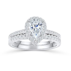 Simulated Diamond Pear-Shaped Halo Engagement Ring Set