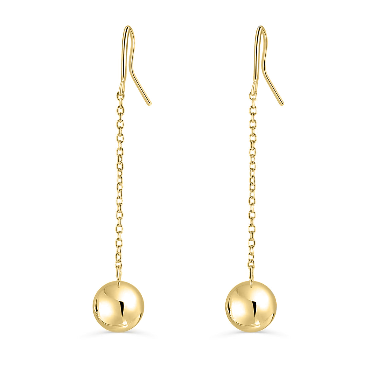 Our first set of dangling earrings and definitely not our last! This earriing features a solid 925 sterling silver ball that hangs from a shiny, dainty chain. Made with the highest quality 925 sterling silver, and plated in 18k Gold, this pair of earrings will keep its radiance for years to come! This pair is fun, unique, and the perfect addition to your earring collection!
