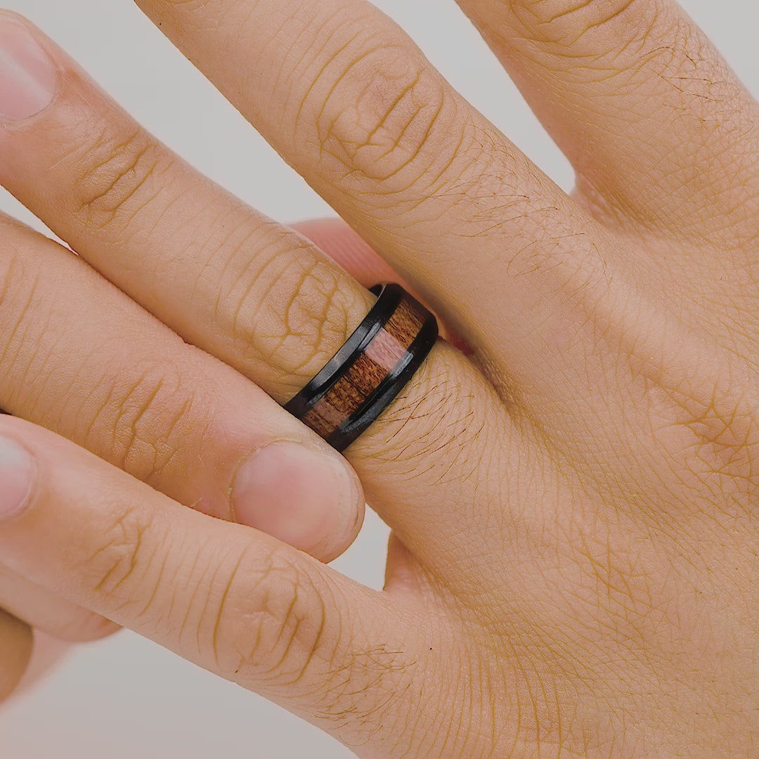 Ring Metal: Titanium Stainless Steel with Sandalwood Inlay