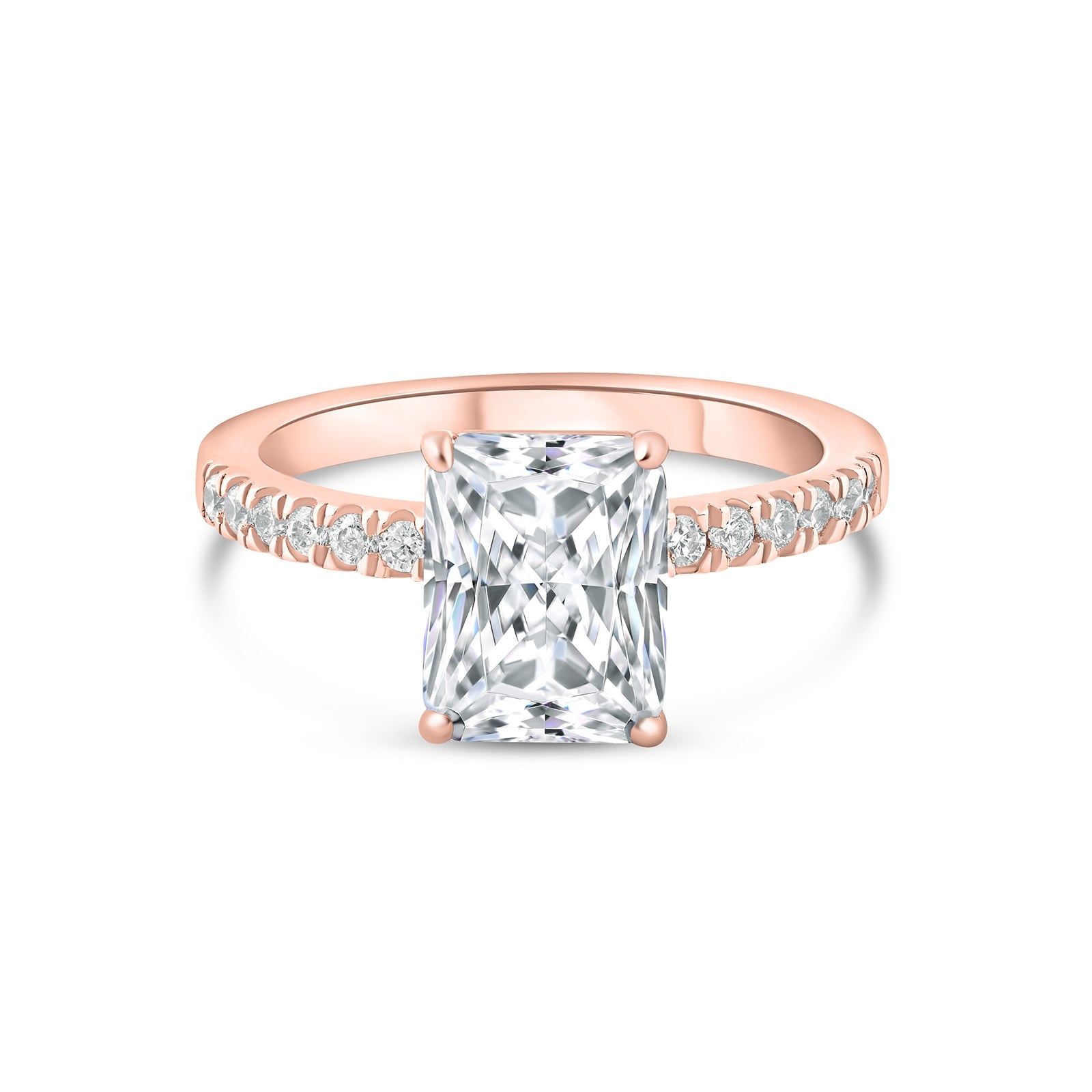 Radiant Cut Rose Gold Half Eternity Engagement Ring
