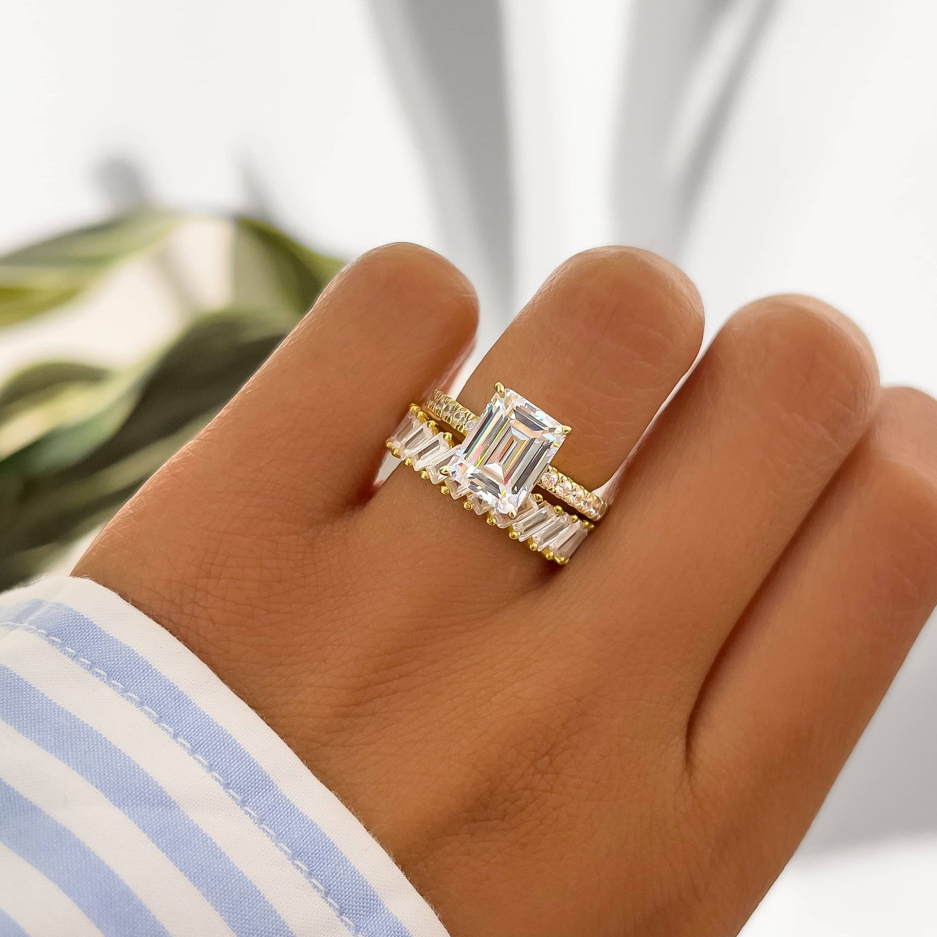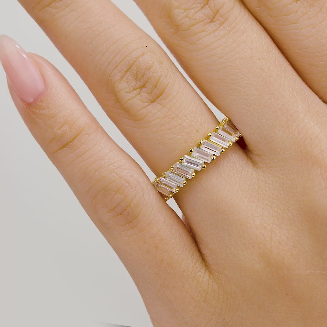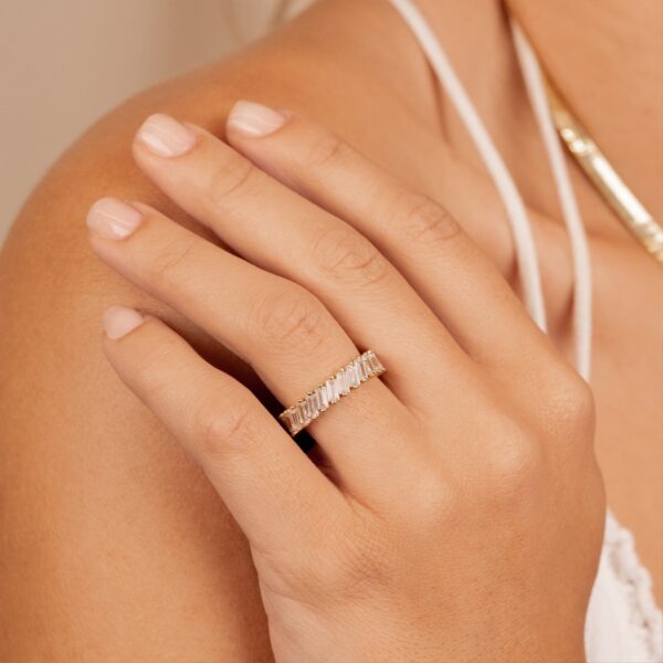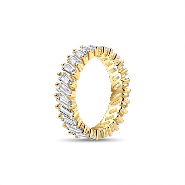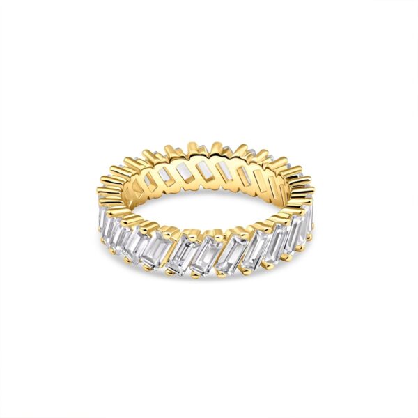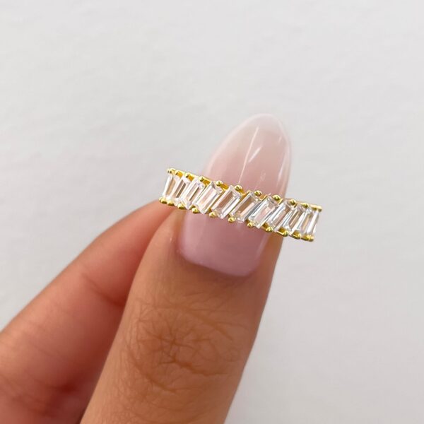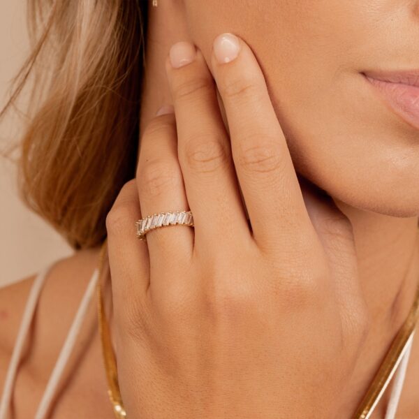 When you need a little glam in your life, look no further than this ring! A breathtaking 18k gold-plated baguette band with an inset of stones surrounding the entire ring. The shine is unreal and you’ll never want to take this one off once you put it on.