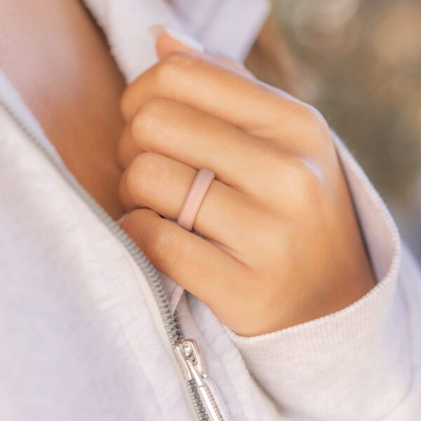 Style and comfort should not be mutually exclusive and This ring is proof of that. This flexible silicone wedding ring will be your first choice whenever you’re getting ready to hit the gym, work with your hands, or engage in any other strenuous physical activity. The soft mauve color gives it a modern and fresh look, allowing you to take the ring straight from the gym to your next event!