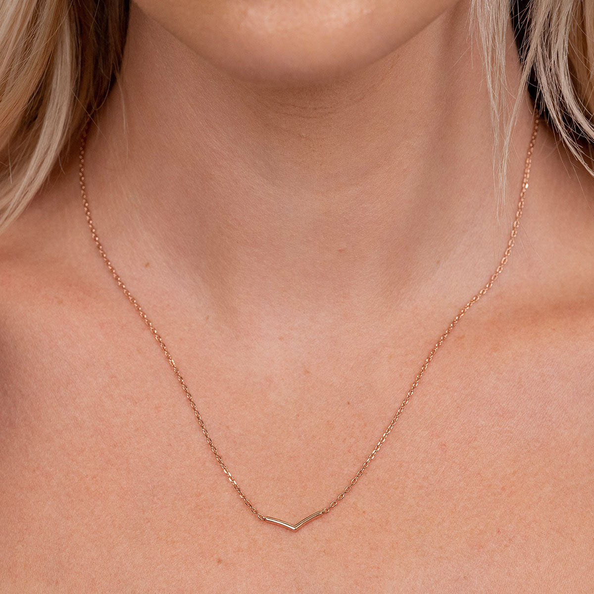 Allow us to introduce, This necklace! Featuring a beautiful 18k rose gold-plated color and slim V design, this necklace will definitely be a go-to for any occasion.