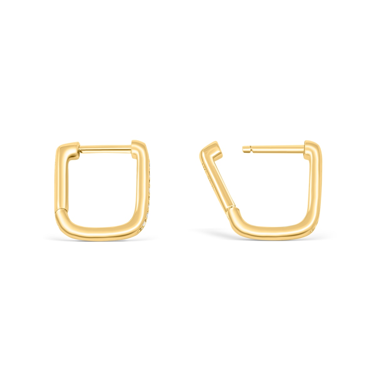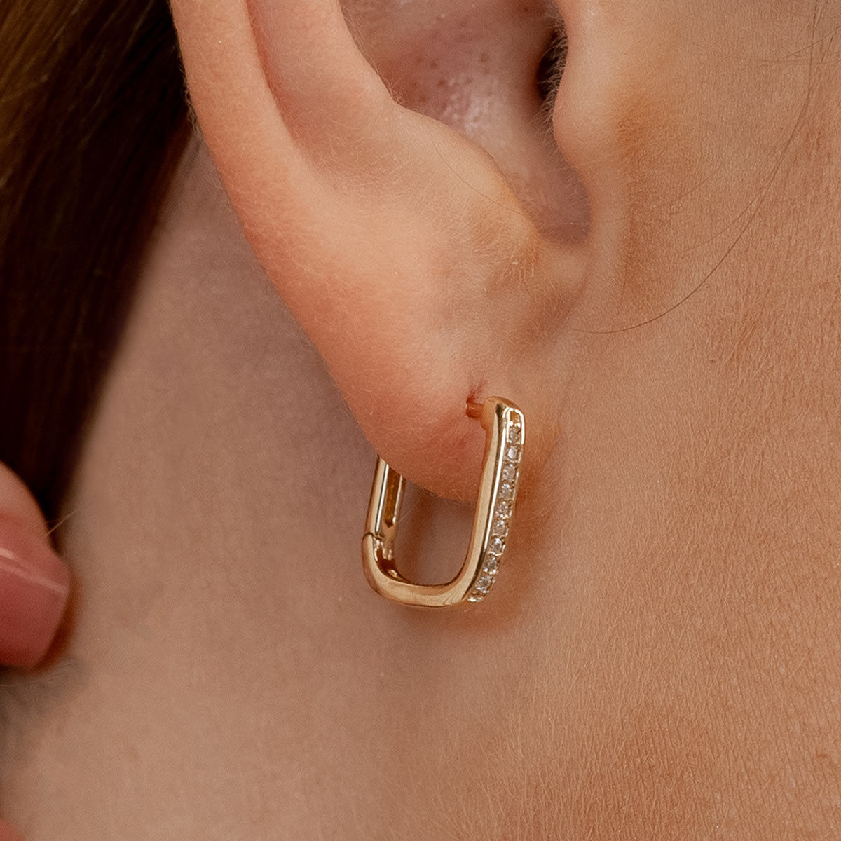 Jewelry that feels and looks good – This is an elevated take on the classic gold hoop huggie. If you’re looking for earrings that are on the simple side but still have a unique flair, you’ve found them! The geometric shape lined with tiny shimmering stones and plated in 18k gold, make this the perfect accessory for all of life’s activities.