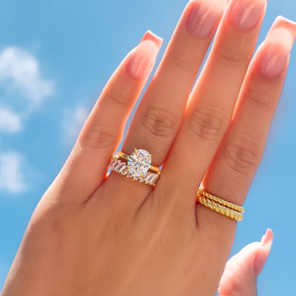 The wait is over, This ring in gold is finally here! Our best-seller is now available in the highest quality 18k gold plating. This 3 carat oval cut beauty proves that simple can be still stunning, making it the perfect ring for any occasion. This ring is a must have in your jewelry collection!