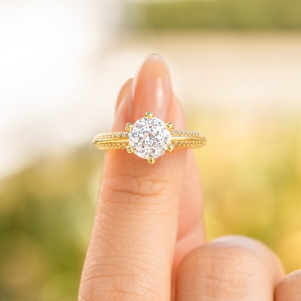 Our rings are made from conflict-free materials and never use blood diamonds. We use high-quality synthetic diamonds, simulated diamonds that not only look perfect as real diamonds, but also sparkle with a mesmerizing light. We believe that beautiful rings should be built on a foundation of ethics and environmental protection.