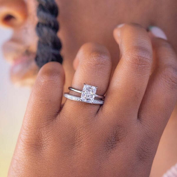 Our rings are all handmade and are crafted to perfection with a gorgeous alternative to a mined diamond. You’ll get all of the brilliance of a perfect and colorless diamond without having to spend a fortune. Our stones are cut to the highest quality standards and the color, cut and clarity will amaze you with their brilliant shine. The band is made of premium 925 sterling silver and is extremely durable to the elements. This ring is plated with Rhodium and is perfect for girls with sensitive skin.