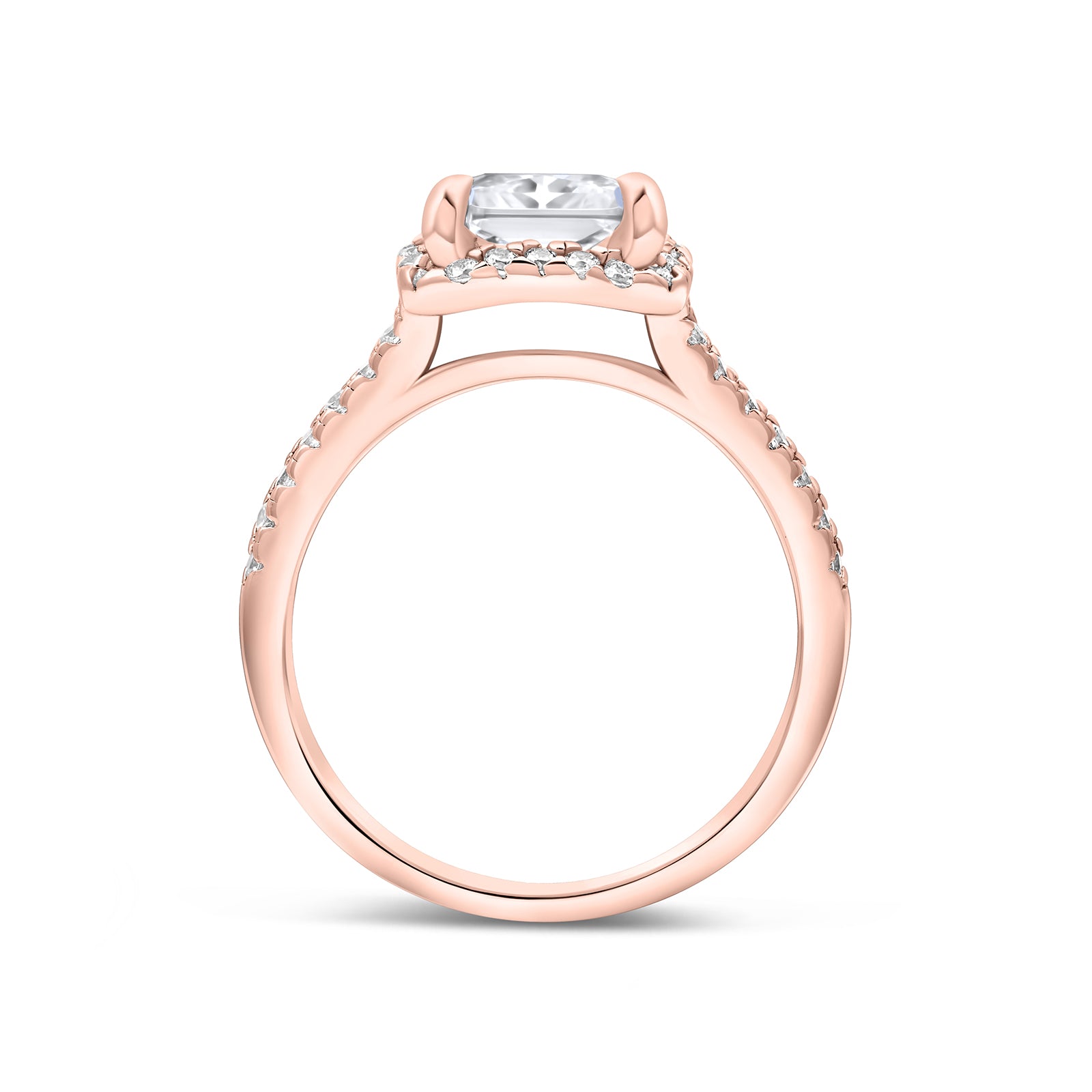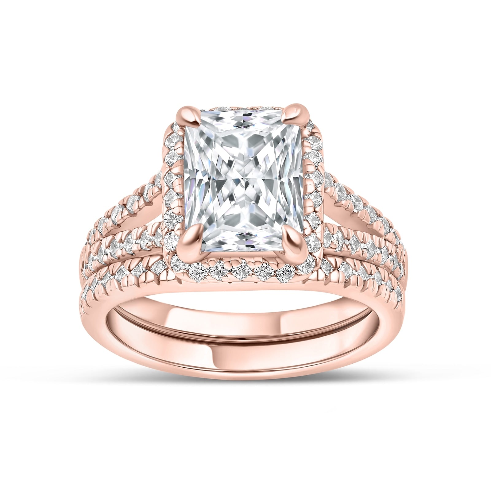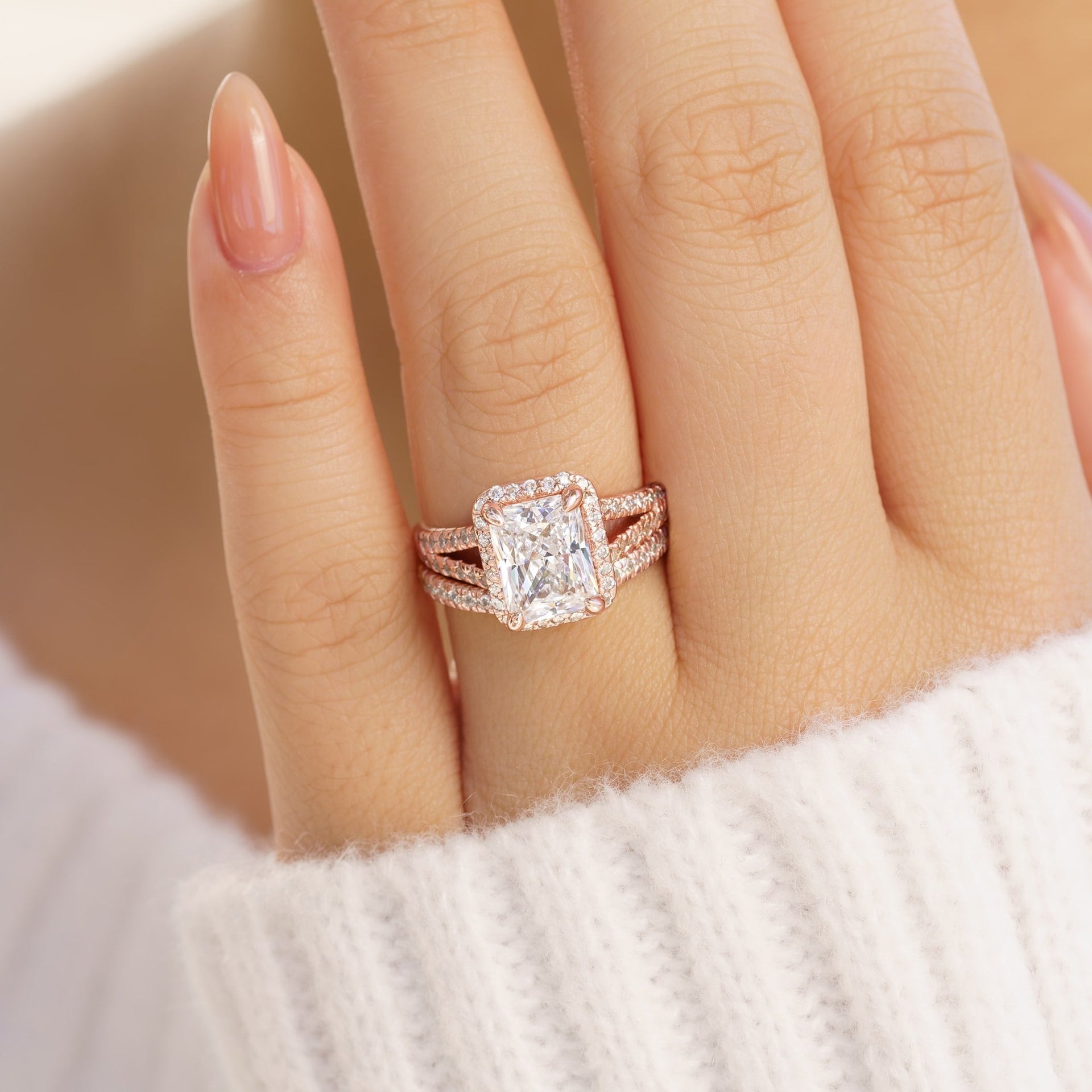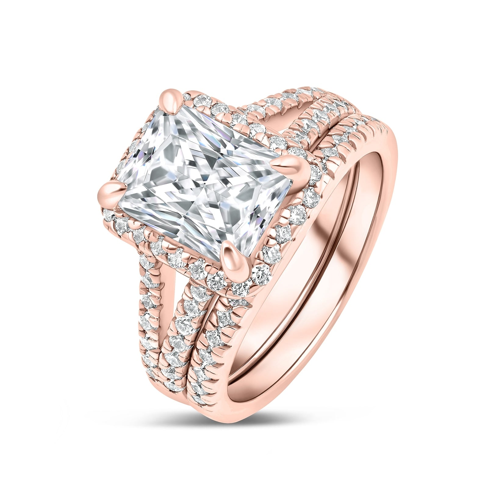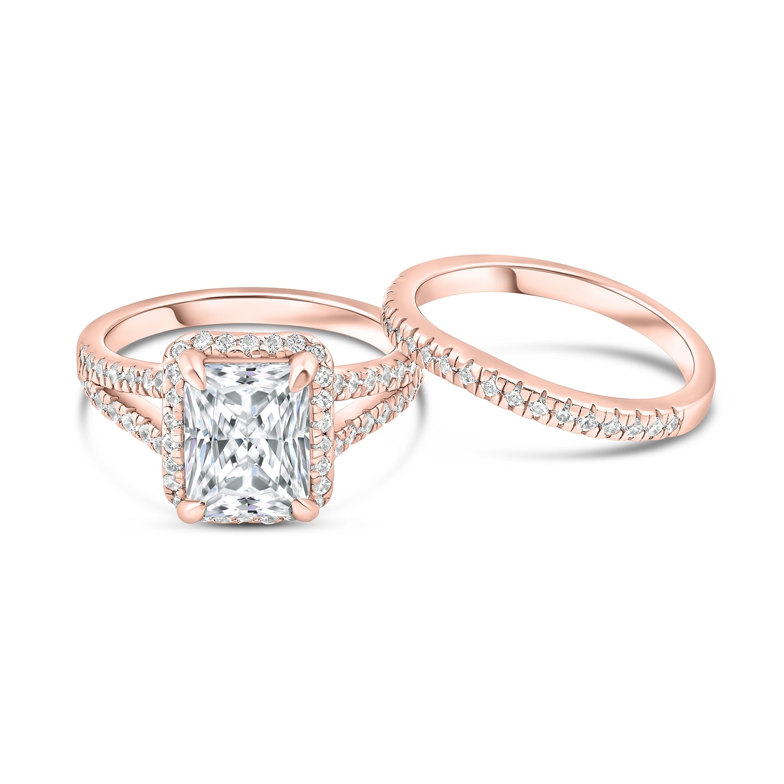 Rose Gold Radiant Cut Halo Wedding Ring Set