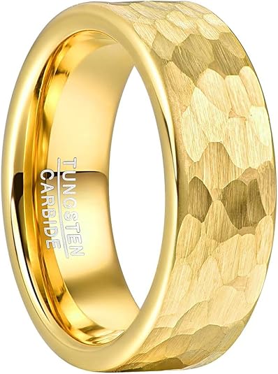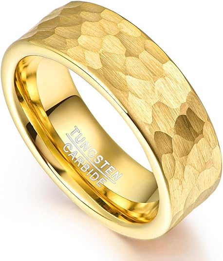 Looking for a ring that looks good and feels good? Meet this ring. This unique hammered designed ring is made of ultra-durable tungsten carbide and is finished in a super cool gold colored finish. If gold isn’t your thing, it’s also available in Black, Slate and Bronze finishes.