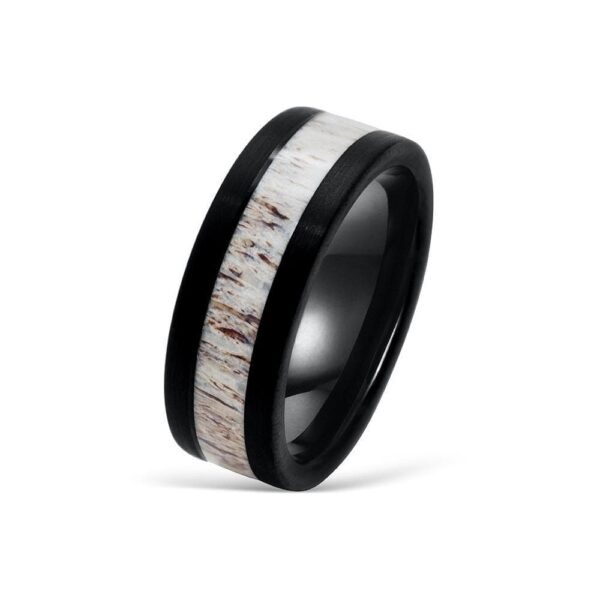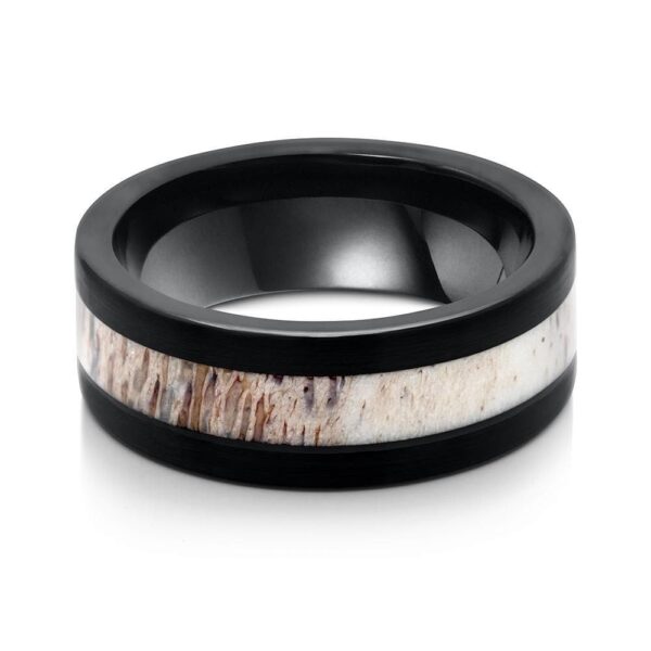 Step up your game with this unique, 8mm tungsten wedding band. Featuring a black band with an elk antler inlay, this men’s ring is sure to turn heads, spark up conversations, and make you the coolest guy in the room!