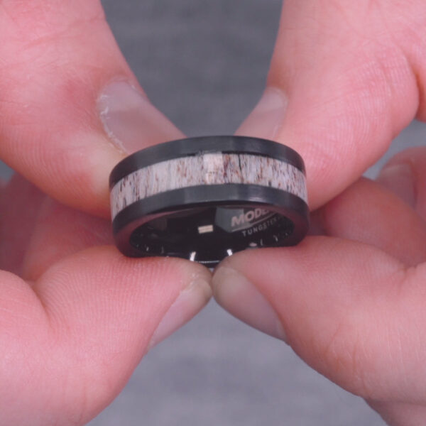 This is definitely not your typical wedding ring. We took our strongest ring material (tungsten) and infused it with an elk antler inlay to create a one of a kind, super interesting ring. Each ring is handcrafted with the finest precision and each piece is unique!