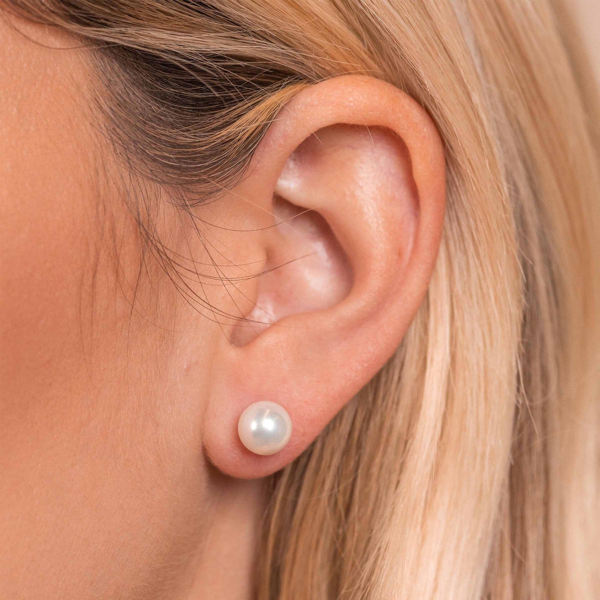 This earring is minus the price! This chic & classy simulated pearl stud earring set features beautiful contrast backings that can dress up any outfit in seconds with little effort. Made with the highest quality 925 sterling silver and plated in Rose Gold, this pair of earrings will keep its radiance for years to come!