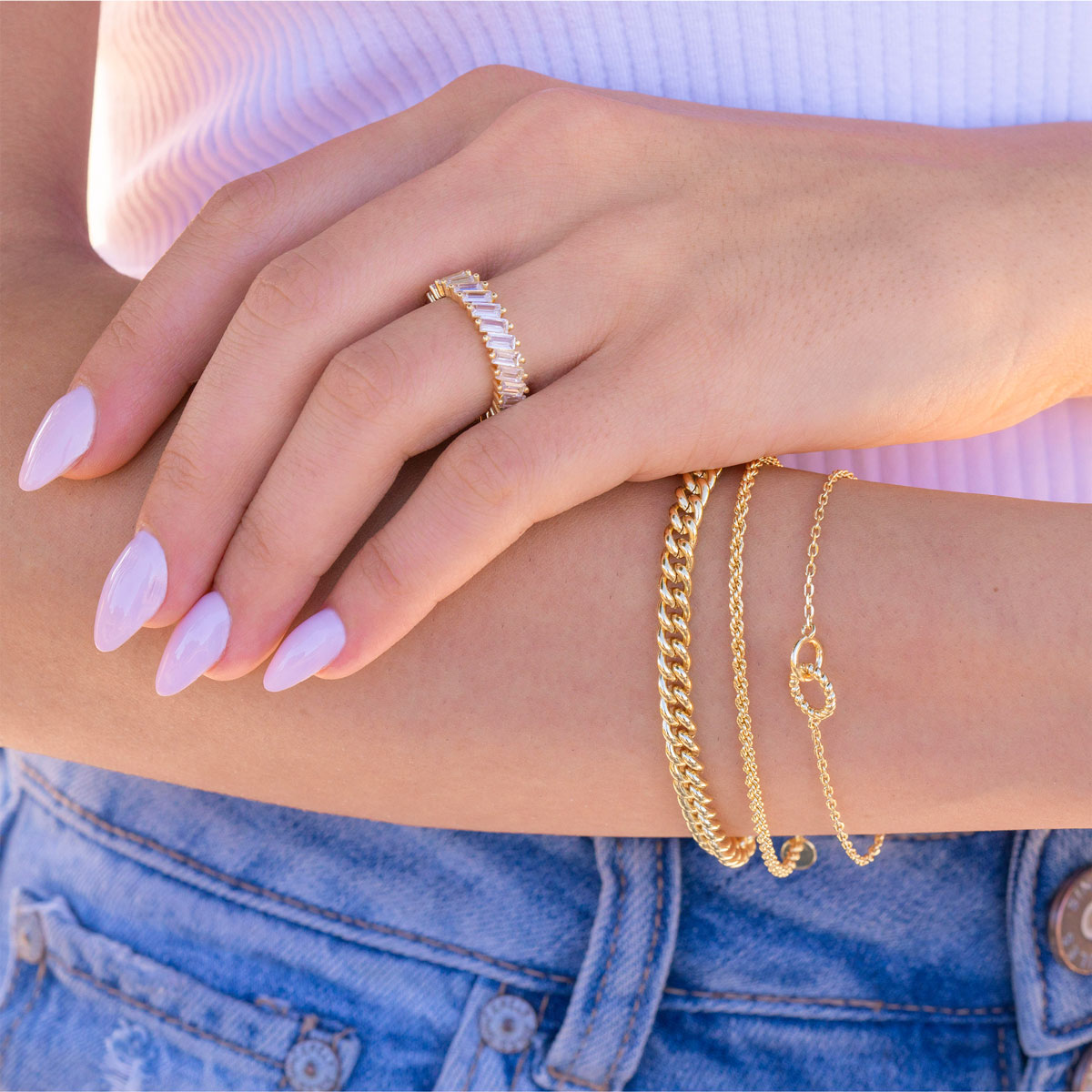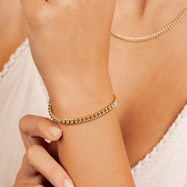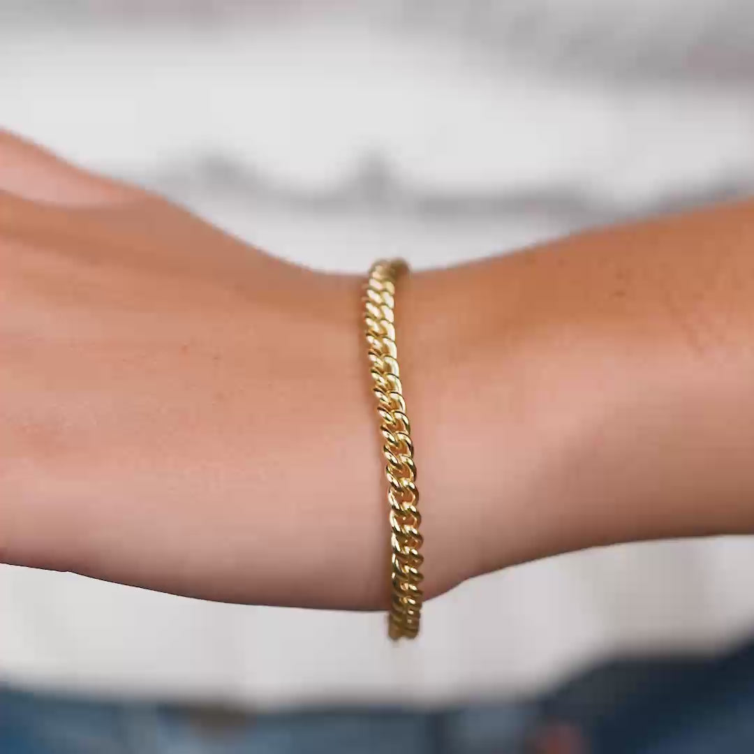 Looking to add a luxurious staple to your jewelry collection? The wait is over. So clean and timeless, these 18k gold plated cuban style links are the perfect accent piece for any outfit. This bracelet is THE bracelet to mix and match with any gold bracelets at ICERING!
