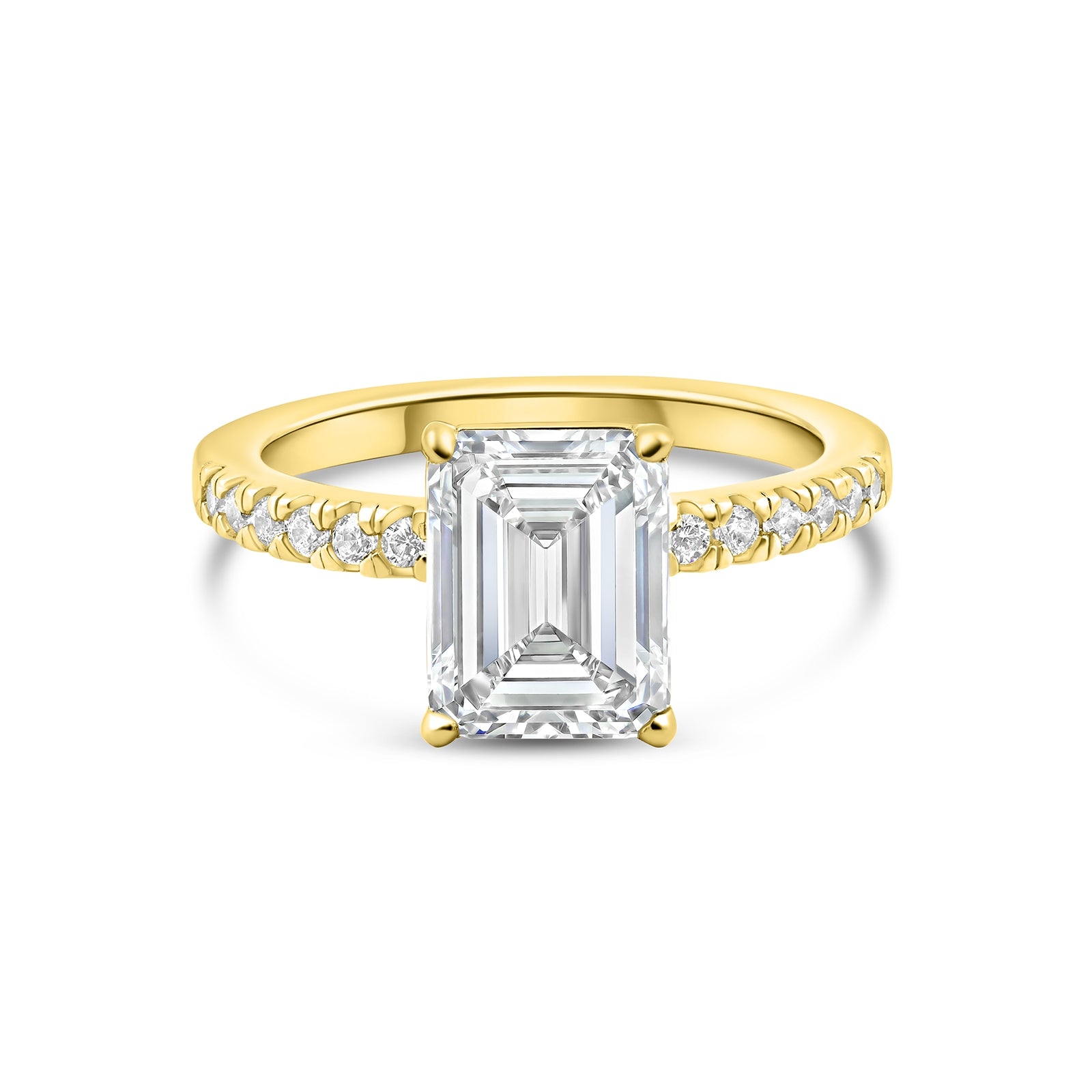 Half Eternity Yellow Gold Emerald Cut Engagement Ring