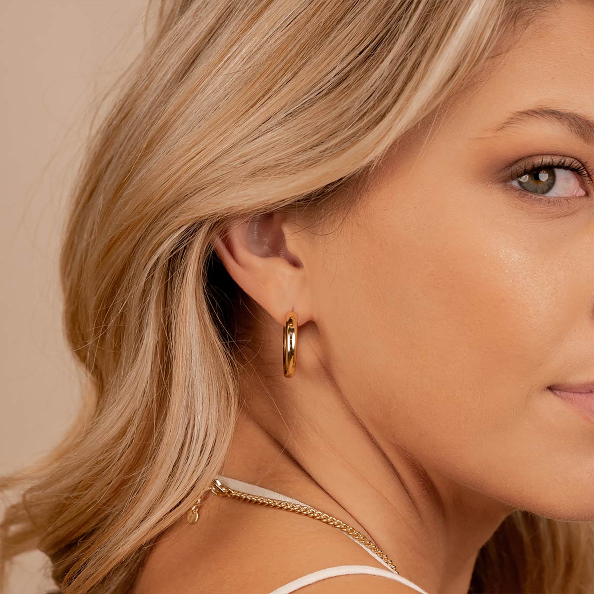 This is the absolute grail earring for your jewelry essentials. These bold hoops are the perfect mood-boosting piece to brighten up your look no matter the weather. Crafted in 18k gold plating, these statement earrings will elevate your look with class.